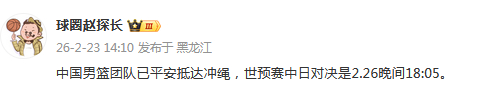 北京时间2月23日,根据媒体人“赵探长”的报道,中国男篮团队已平安抵达冲绳,世预赛中日对决是2.26晚间18:05。