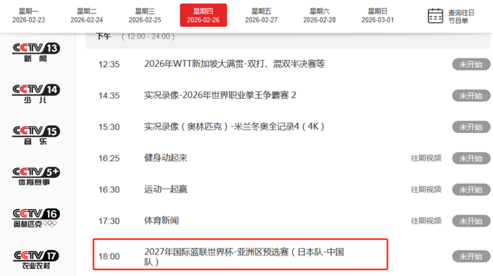 根据央视体育的转播预告,中日对决将会同步直播这场焦点大战。