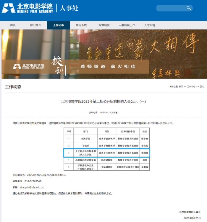 2025年9月,北京电影学院官方公告显示,乒乓球运动员梁靖崑被拟聘为人文社会科学教学部高水平体育教师,拟聘岗位等级为教师专业技术七级岗。(梁靖崑是国际级运动健将)所以就算梁靖崑原地退役他也有新的工作可做。