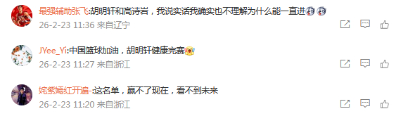 球迷热议男篮14人出征名单:官方评论区被冲爆 高诗岩频繁被点名