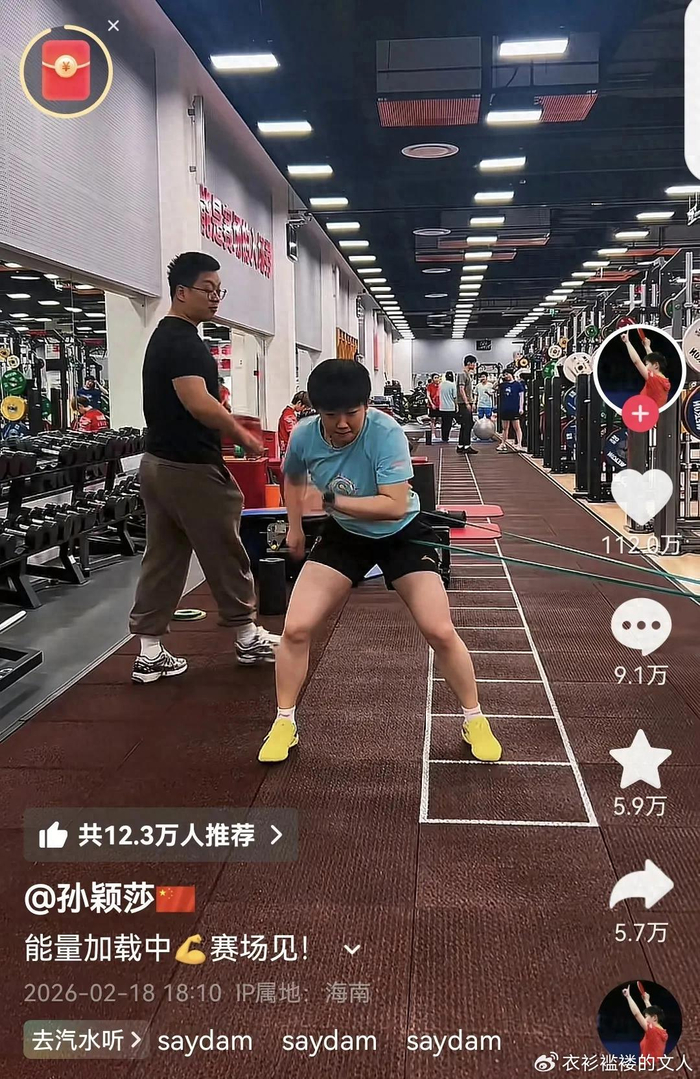 孙颖莎晒训练视频,大年初二仍在刻苦训练,不到6小时点赞超110万