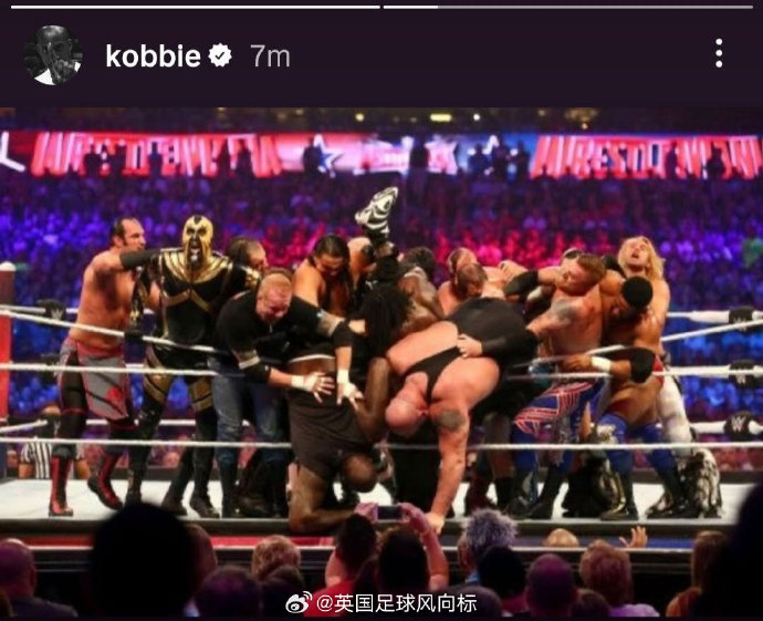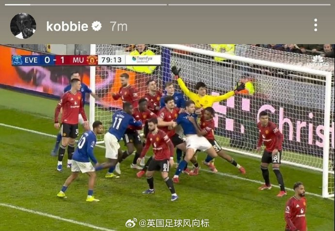 【英超上演WWE大战笑cry】#埃弗顿0比1曼联#,比赛结束后,曼联中场科比梅努,在个人社交主页更新动态,这两张图实在太形象了。