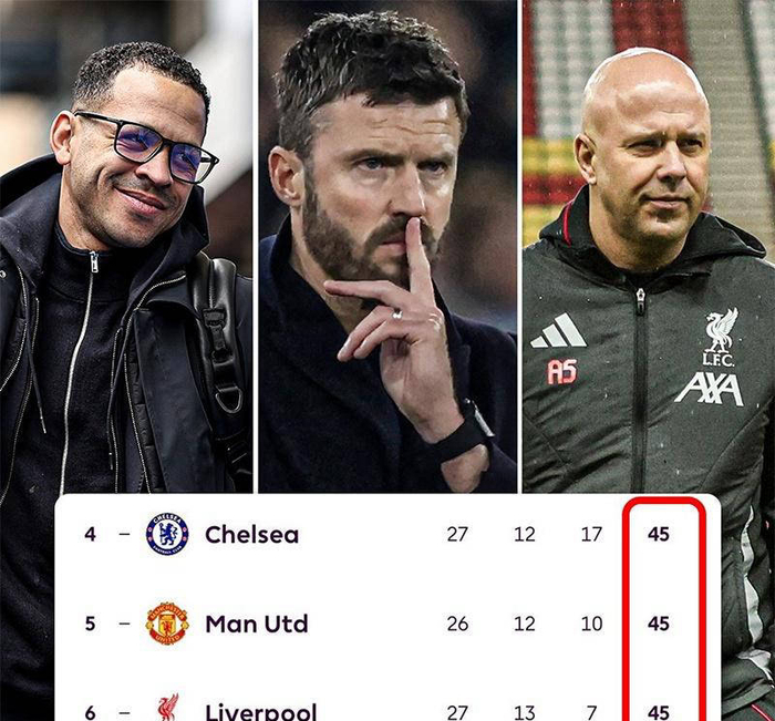 英超第27轮的比赛已基本结束,唯独曼联尚有一场赛事待打。目前积分榜出现一大奇观:切尔西、曼联和利物浦这三支传统豪门均积45分,同列第四至第六名,而曼联仍有一场未赛,这无疑让争夺欧洲冠军联赛资格的形势更加扑朔迷离。