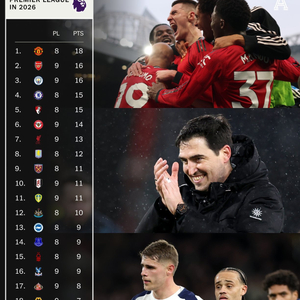 2026英超积分榜曼联18分领跑,阿森纳曼城紧随其后 英国足球那点事 优质体育领域创作者 02.2418:01 关注 2026年的英超积分榜:曼联18分领跑,阿森纳、曼城屈居第二垫底的是热刺,进入新年以来还没赢过球🥶#英超联赛#