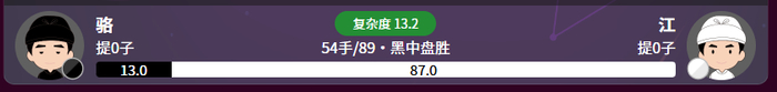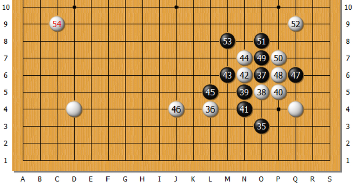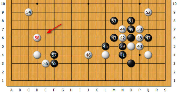 其实,复盘者形势判断有误。从38走到54,白棋胜率从60%提高到87%!
