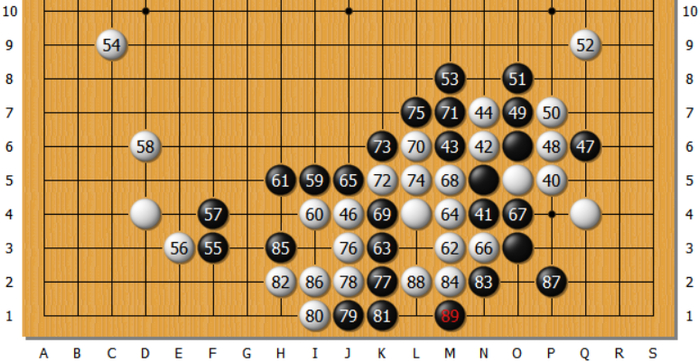 如上图,黑85走1位,最终黑吃白,取得稳稳优势。