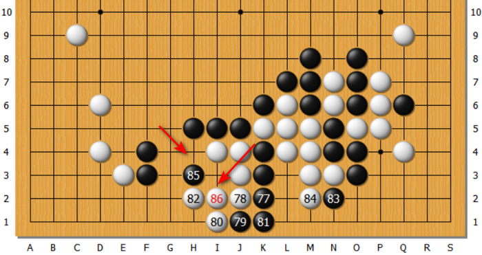 见上图,85、86两步是第一对恶手。