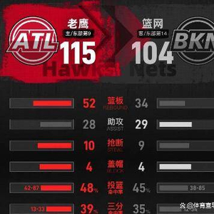 最终比分定格在115比104,老鹰不仅完成了惊天逆转,还顺手给篮网送上了苦涩的4连败。而导演这一切的,正是他们的新核心:砍下26分12篮板的杰伦·约翰逊。