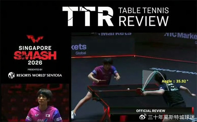 而在乒乓球这边,WTT新加坡大满贯上,男单1/16决赛,王楚钦3-0战胜户上隼辅,进入16强。虽然国乒一哥赢下了比赛,却遭遇了外界的质疑,因为第一局比赛中,王楚钦局末发球被罚分,虽然提出鹰眼挑战,但根据TTR显示为35.92°,属于明显的遮挡,因此王楚钦鹰眼挑战失败。