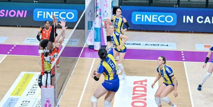 更让球队教练组感到惊喜的是她的发球和一传环节。庄宇珊全场比赛发出了4个ACE球,直接破坏了对手的一传体系。而在防守端,她承担了全队数量最多的一传任务,并且交出了90%的到位率。比赛结束后,意甲官方将单场最佳球员奖颁给了这位中国小姑娘。这是庄宇珊登陆意甲后获得的第一个个人荣誉。