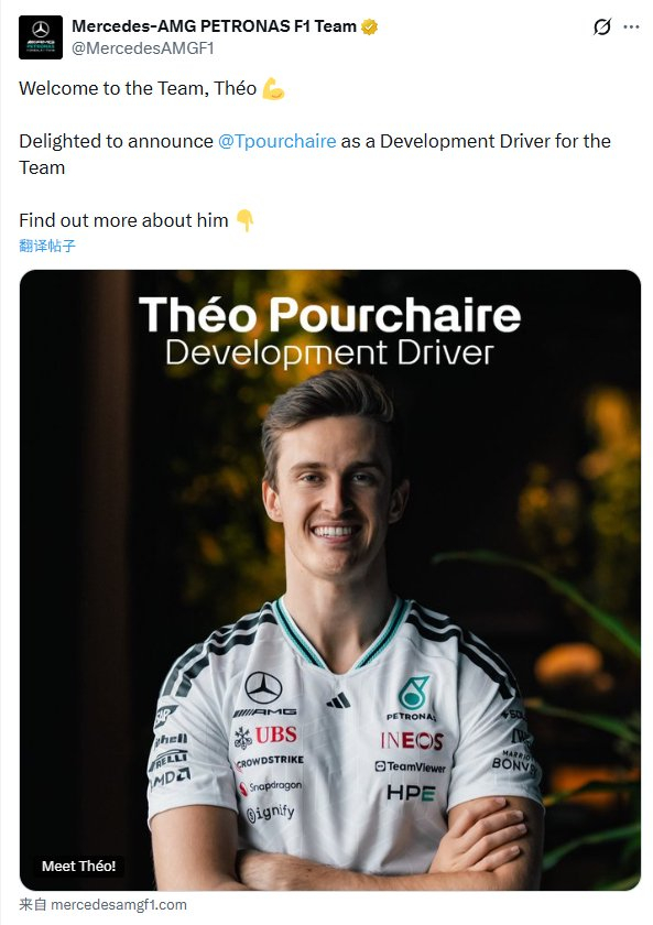 前F2车手总冠军泰奥·波谢尔加入梅赛德斯车队担任研发车手。