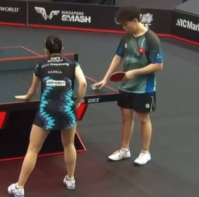 陈颢桦/金娜英也是跨协会的组合,他们在第一场比赛中完成了爆冷,他们3-1淘汰了林昀儒/郑怡静这对配合许久的混双组合,四局比分:【11-8,5-11,11-7,11-9】。