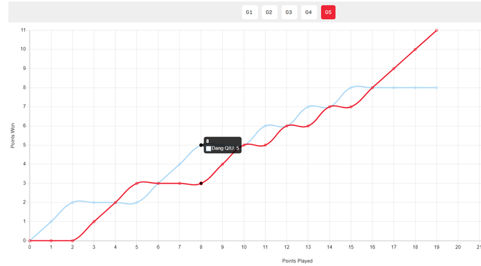抢五决胜局开场邱党5-3领先,随后邱党6-5、7-6、8-7领先,泊雷特打出4-0的攻防浪潮完成了连下三局的壮举。