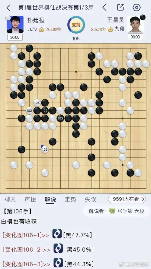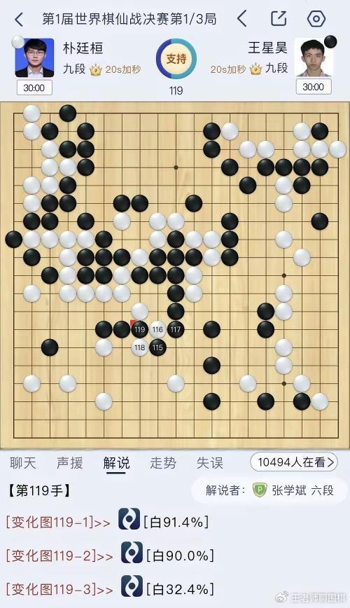 四角穿心术降服第一局,棋仙战朴廷桓给王星昊上了一课