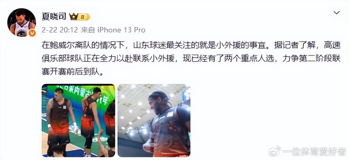 第四个消息,据山东知名媒体人夏晓司透露,关于球队的小外援问题,已经有了两个重点人选,现在是2选1,力争能够打上第二阶段的比赛。