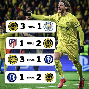 此前联赛阶段连胜曼城(3-1)、马竞(2-1),成为54年来首支在欧冠对五大联赛球队豪取4连胜的非五大联赛球队。