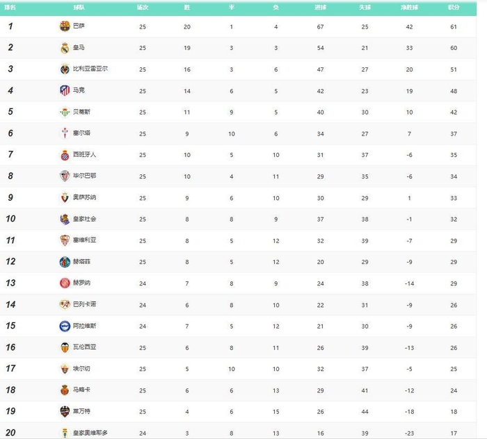 刚刚结束的第25轮比赛,皇马客场1-2不敌奥萨苏纳,而且是最后时刻被对手绝杀,非常伤士气。巴萨则士气大涨,3-0击败莱万特,目前积61分反超皇马1分再次夺回榜首位置。