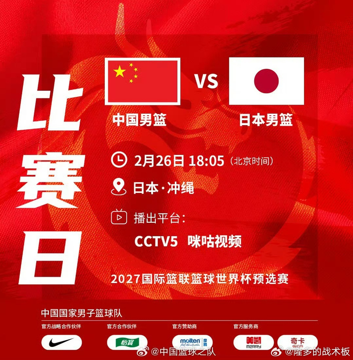 中国男篮今晚18:05决战日本队,赵睿赵继伟对决渡边雄太 隆多的战术板 02.2616:48 关注 今晚18:05中国男篮 VS 日本男篮,世界杯预选赛关键战!赵睿、赵继伟领衔,对面渡边雄太出战去年11月,中国男篮两负韩国,目前出线形势严峻#中国男篮vs日本男篮#
