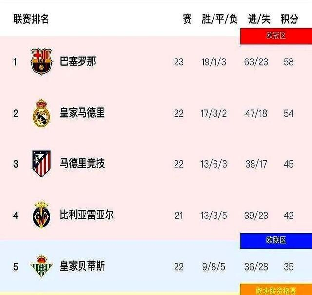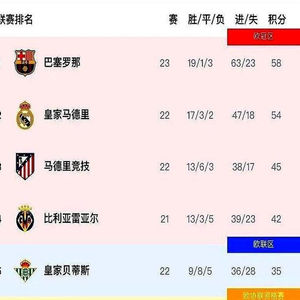才踢了23轮,积分榜就已经断层了。皇马和巴萨还在为1分的差距死磕,但第三名的马竞,已经被甩开了整整12分,争冠队伍提前掉队,现在只能先想想怎么保住欧冠资格。