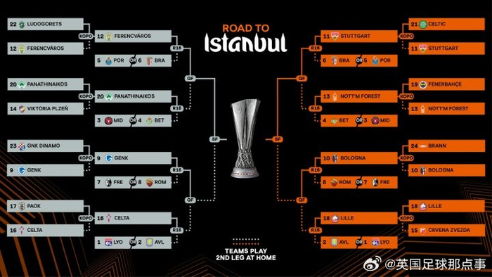 欧联淘汰附加赛对阵结束,16强球队全部确定⬇️