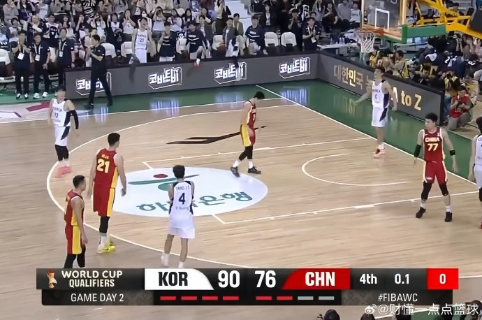 临场调整失效:落后30分仍缓慢换人,对韩国外线火力(如李政玹三分7中6)无针对性应对。