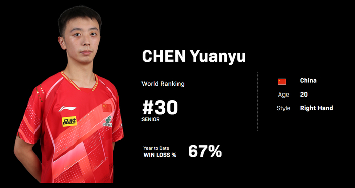 陈垣宇今年只有20岁,他的世界排名仅仅30位,在亚洲杯上陈垣宇连小组赛都未能突破,小组赛1胜2负。而在WTT马斯喀特常规挑战赛他在男单半决赛1-3惨败弗朗西斯卡,WTT多哈球星挑战赛他更是在首轮1-3不敌薛飞一轮游,在WTT多哈冠军赛0-3惨败梁靖崑止步16强。