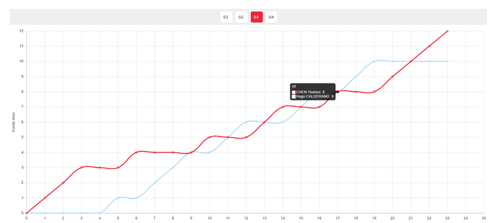 第四局雨果一度6-4领先,随后陈垣宇追到6-6,7-7,8-8,9-9,关键分陈垣宇拿下11-9。