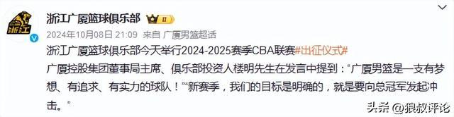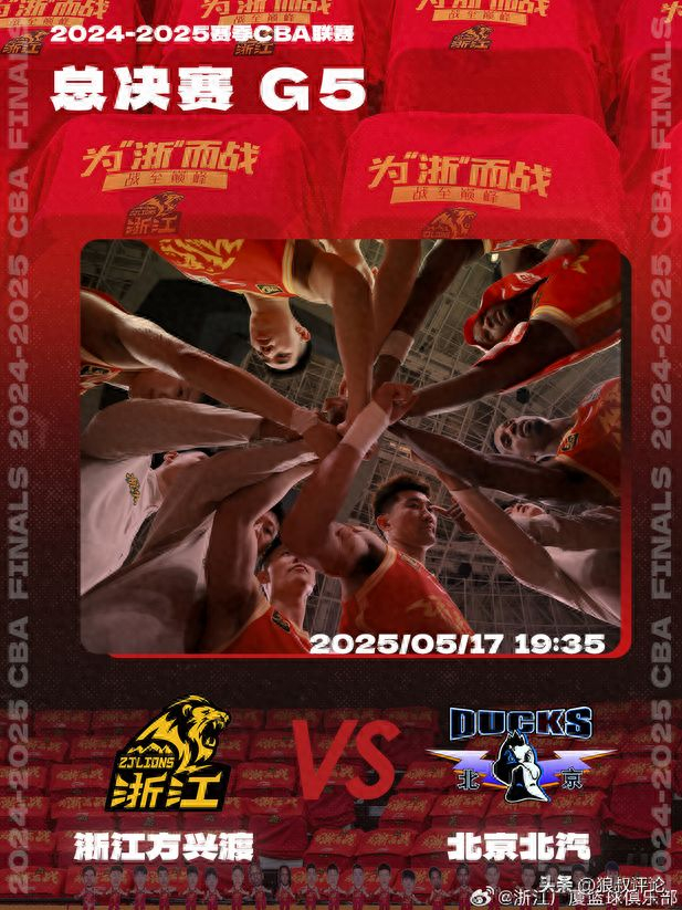 广厦男篮官方社交媒体发布了总决赛G5前瞻,配文说道:决胜之战,烽火问鼎!广厦雄狮加油。
