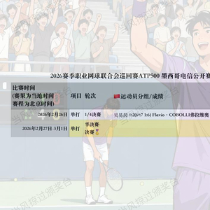 🎾2026年2月27日上午,职业网球联合会巡回赛ATP500 墨西哥电信公开赛结束第6比赛日⬇️