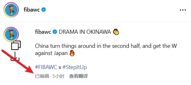今天上午,FIBA官方编辑了相关内容,将文案修改,去掉了“Sneaky”,改为:“冲绳戏剧!中国男篮在下半场翻盘,拿走了胜利!”