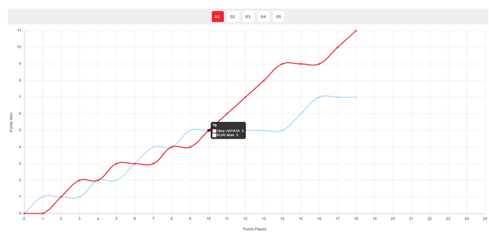 第二局蒯曼4-1领先,随后6-2继续领先,早田追到6-7后,蒯曼再度8-6拉开,早田希娜追到8-8,一鼓作气10-8逆转拿到局点,蒯曼再度崩盘。第三局与第四局蒯曼赢得非常轻松,早田希娜将体能留到抢五。