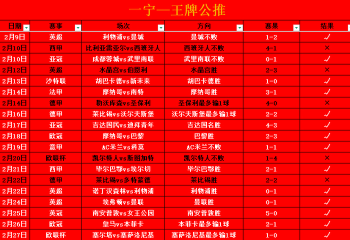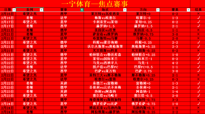 昨天的比赛整体发挥不太理想,也是本月少有的减号,无论是杯赛还是沙特联,跳档的幅度还是非常大的,甚至热冷过头,实在是不好意思了。由于“信心十足”,在选题上过于冒失,首先欧联这是一天比完,优势大的球队战意不好,劣势大的球队也是无战意,所以整体就陷入想当然的情况。我不说思路反下能红多少或黑多少,不过首次接触的赛事由于自信导致劣势过大,再次和大家抱歉了。我们现在总共三个系列套餐、希望之光、全能1+1,这点也是因人而异,每个系列都有每个系列的储备,主打还是无压轻松,好好利用这周末的来临打个翻身仗!战绩统计可以看总表更新,实事求是,今天附上五大联赛表格请神!