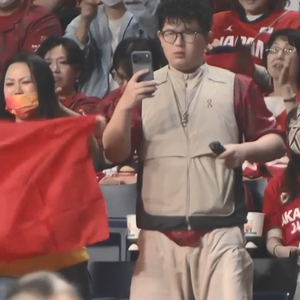 王君瑞此次似乎是和几位朋友一起坐在距离中国男篮非常近的看台位置上,而且是第一排的位置。尽管距离中国男篮非常近,但王君瑞等人的压力并不小。因为整个看台上绝大部分都是日本球迷,中国球迷非常少。