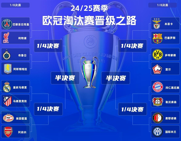 北京时间2025年2月21日晚,本赛季欧洲冠军联赛,16强对阵抽签结束,具体对阵如下:
