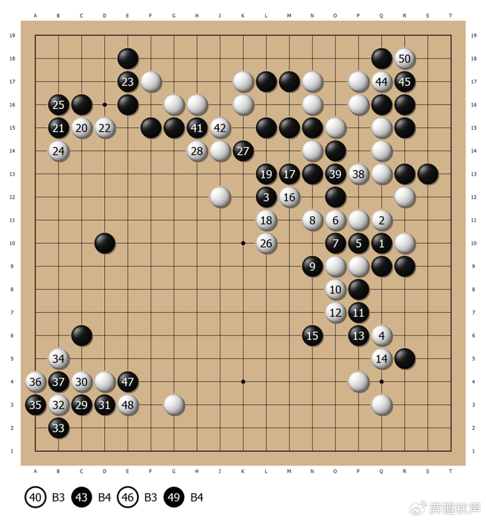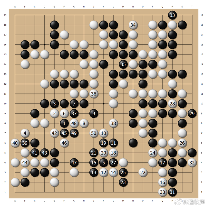 黑33虽得以联络,但被白34提掉两子,仍是绝境。