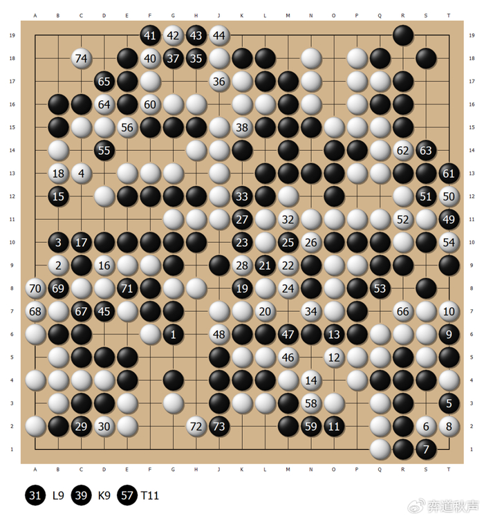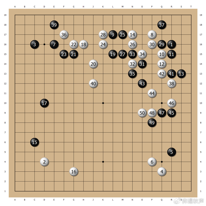 一力辽黑37以下冲击白棋,但白50顺利联络,黑棋无所得。