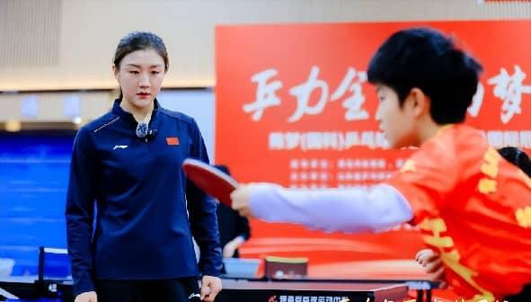 孙颖莎刚满15岁进了国家队,陈梦就主动过来帮她熟悉环境,还跟她分享训练的点滴。
