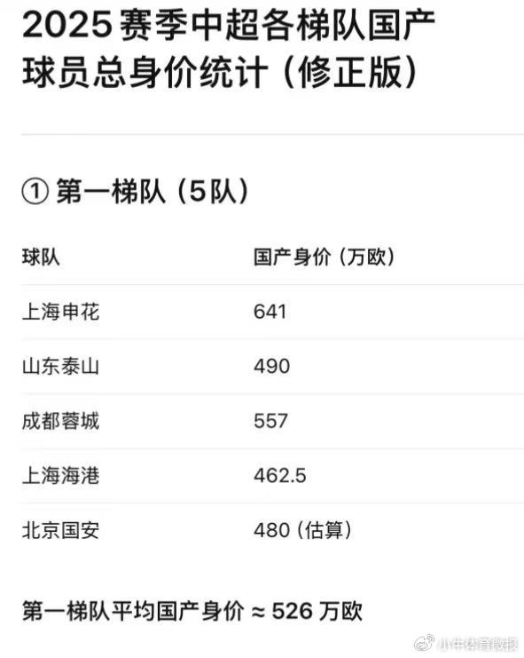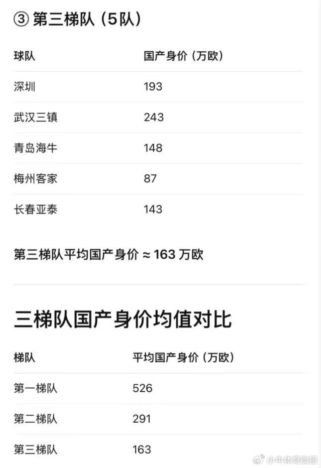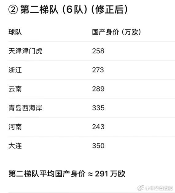 国内球员的身价总和,决定球队在哪个梯队阶层;