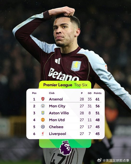 卡里克上任时,曼联还落后维拉11分;如今有机会积分榜超越埃梅里的球队👀