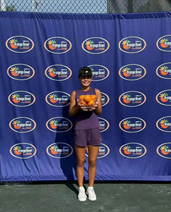 这位中国小花就是孙心然,与2007年出生的王雨涵、2008年出生的张瑞恩相比,2010年出生的她年龄无疑要更小一些。2025年10月,孙心然连续两周在ITF W15沙姆沙伊赫希望赛上夺得冠军,成为获得希望赛冠军年龄最小的中国女子网球选手。不仅如此,这一年的12月底,她还在橘子碗U18组别中获得了冠军,这是中国女子网球首次在橘子碗这一级别的赛事中获得冠军。