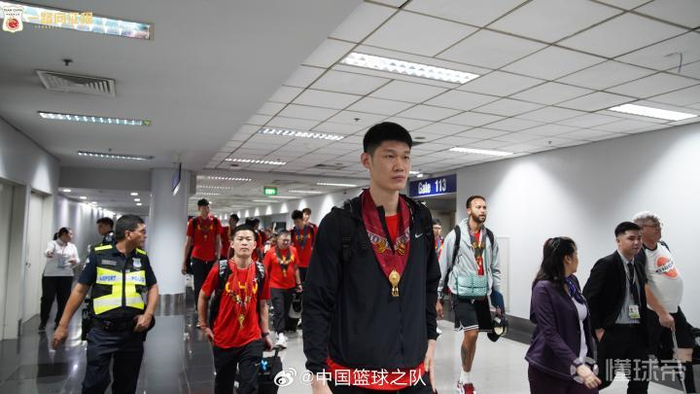 8月23日晚,中国男篮乘坐航班顺利抵达菲律宾首都马尼拉,中国篮球之队官方分享球员机场照。