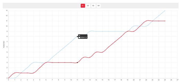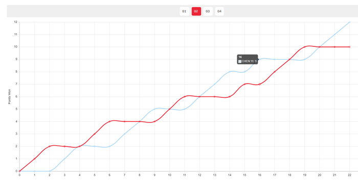 第二局开场陈幸同4-2领先,随后陈熠追到4-4、5-5,陈熠突然9-7反超,随后陈幸同9-9扳平,再到10-10,关键分又是陈熠拿下。
