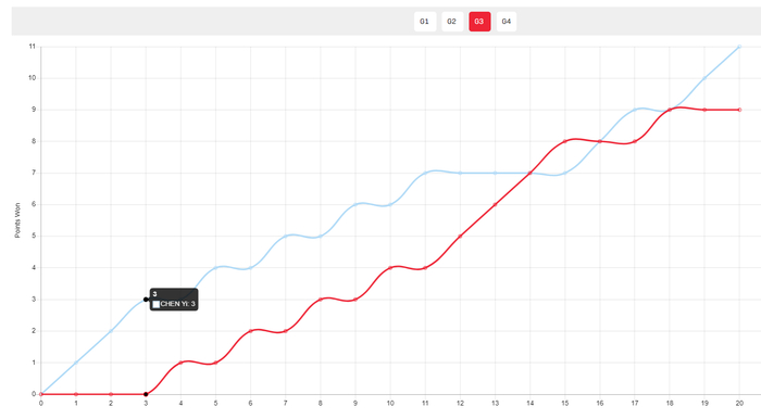 第三局开场陈熠3-0领先,陈熠一路领先到7-4,陈幸同扳平后还完成8-7反超,随后再到9-9,关键分又是陈熠轻松拿到,前三局都打到关键分,可关键分都是陈幸同落败。