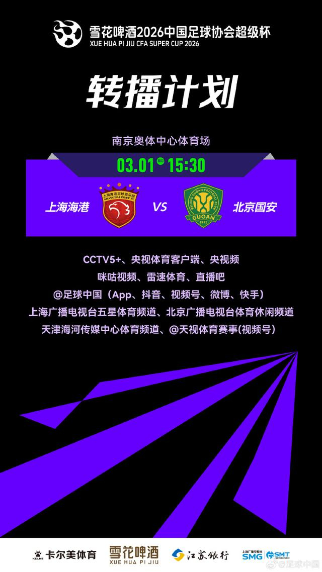 3 月 1 日,南京奥体中心,中国职业足球打响开年大戏 ——2026 中国足协超级杯,由中超冠军上海海港队对阵中国足协杯冠军北京国安队。原本,超级杯只是中超联赛正式打响前的 “开胃小菜”,但由于上海海港、北京国安的聚首,让比赛有了 “饕餮大餐” 的味道。