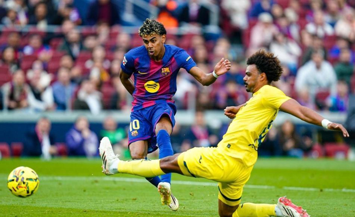 比赛开打之后,巴萨就在主场球迷的助威声中,朝着黄潜的球门发起了潮水一般的进攻,第28分钟费尔明抢断后送出直塞,亚马尔单刀推射建功,帮助巴萨取得了1-0的领先,第37分钟亚马尔右路单挑防守球员,强行内线杀到禁区后兜射远角,将领先的优势扩大到了2球。