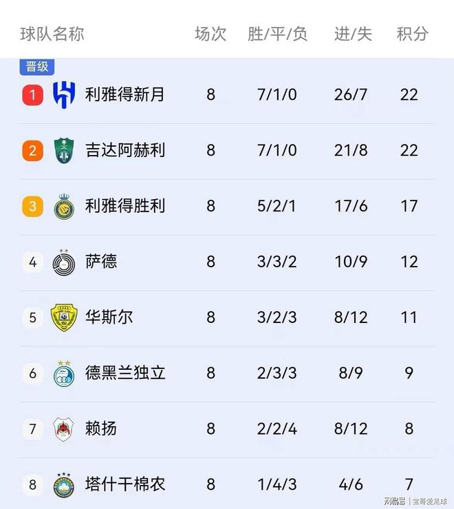 亚冠精英联赛联赛阶段的比赛已经全部结束,西亚区来自沙特联赛的三支球队利雅得新月、吉达联合和利雅得胜利以非常大的领先优势排名前三,可谓是一枝独秀。东亚区由于山东泰山退赛引起了非常大的混乱,截止目前亚足联还没有给出一个非常明确的结果,也使得最终的晋级结果还有可能发生变化。