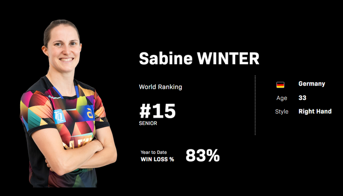 1/8决赛:温特3-1朱雨玲【13-11,5-11,11-8,11-8】;