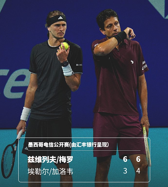 双打决赛:单打赛场失意的德国人小兹维列夫搭档巴西老将梅罗,以6-3 6-4击败埃勒尔/加洛韦,首次联手斩获巡回赛双打冠军。这是小兹维列夫获得的第3个男双冠军,而梅罗则是第42个。
