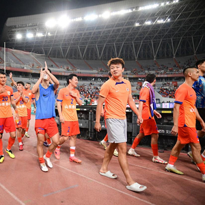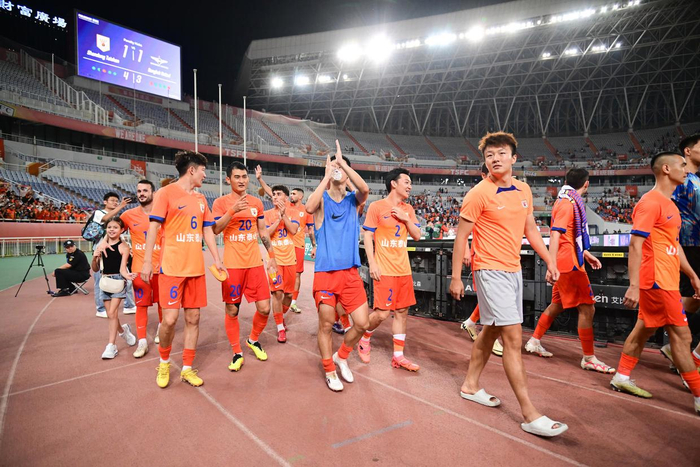 2024年8月13日,24/25赛季亚冠精英联赛附加赛,山东泰山点球大战战胜曼谷联晋级正赛,图为山东泰山队员谢场 图据视觉中国