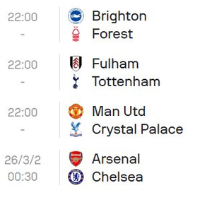 英超今夜三场焦点战,曼联阿森纳切尔西出战 英国足球那点事 优质体育领域创作者 03.0117:45 关注 【看球安排】今晚比赛预告22:00 #曼联vs水晶宫#22:00 #富勒姆vs热刺#00:30 #阿森纳vs切尔西#